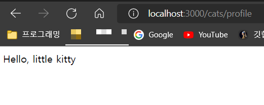 예를 들어, @Get('profile') 을 적으면 컨트롤러의 cats 이하의 경로로 접근할 수 있습니다.