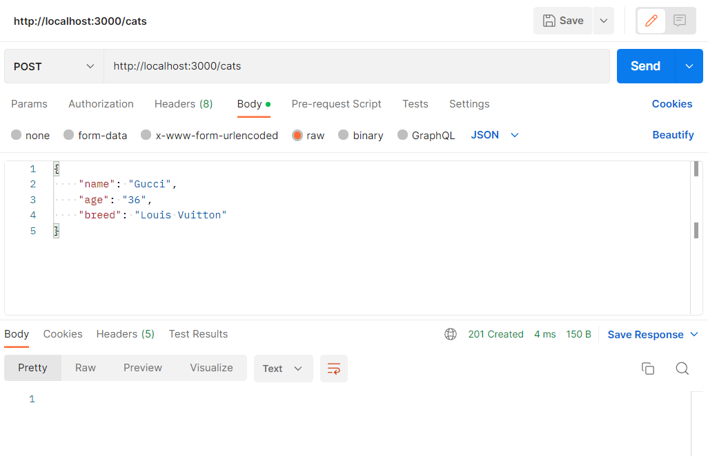 먼저 POST /cats로 값을 push합니다.