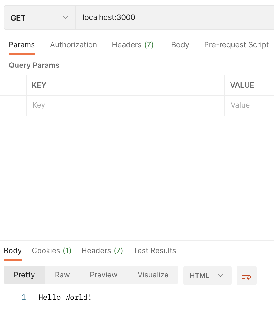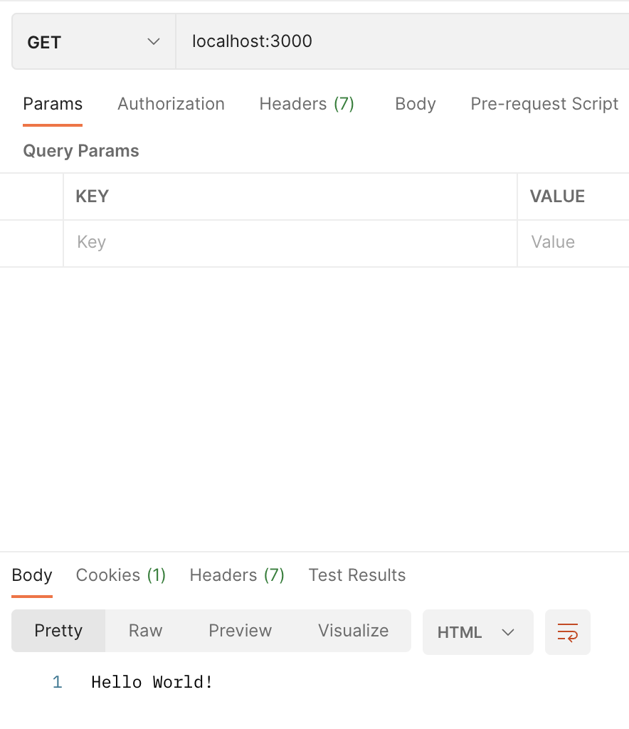 이제 직접 요청을 보내 캐시에 항목을 설정하고, 값을 불러와보겠습니다. 여기서는 Postman을 사용했습니다. Insomnia 등을 사용해도 무방합니다. GET http://localhost:3000 요청을 보냅니다.