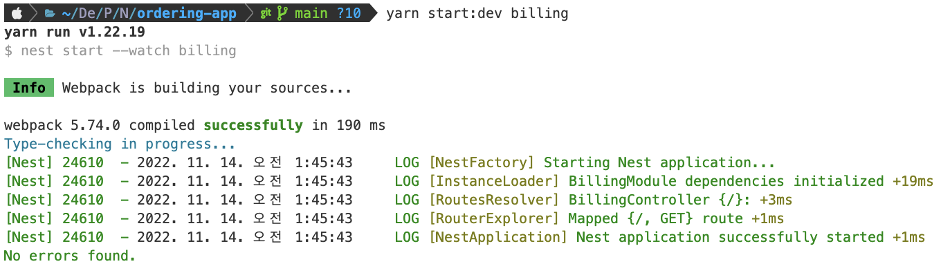 # npm run start:dev billing