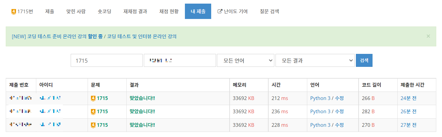 heapq.heappush(리스트, 넣을 값)으로 값을 추가하는 경우와 이미 존재하는 리스트를 heapq.heapify(리스트)로 구현하는 두 가지 경우가 있는데, 아무래도 리스트 컴프리헨션을 통해서 heapq.heapify()를 사용하는 것이 조금 더 빨랐다.