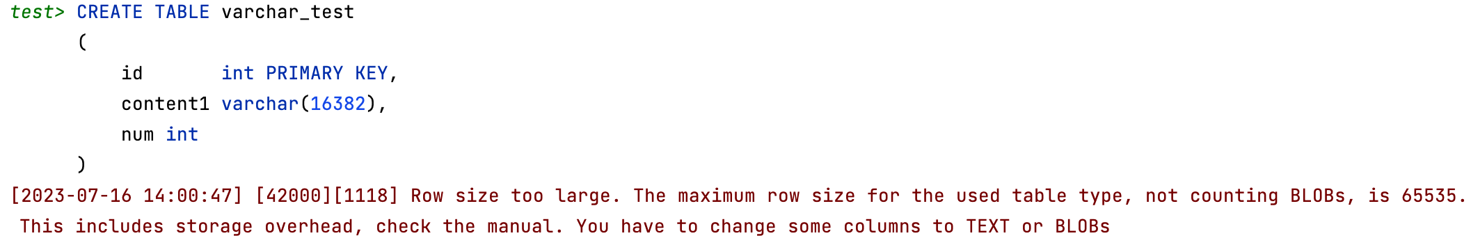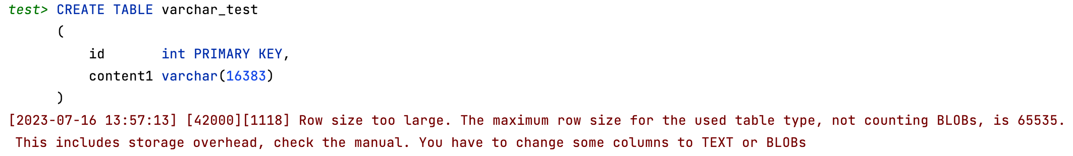 16382까지는 생성이 가능했는데, 이러면 추가적인 컬럼을 추가하고자 하더라도 사용하지 못하는 불상사가 발생합니다.