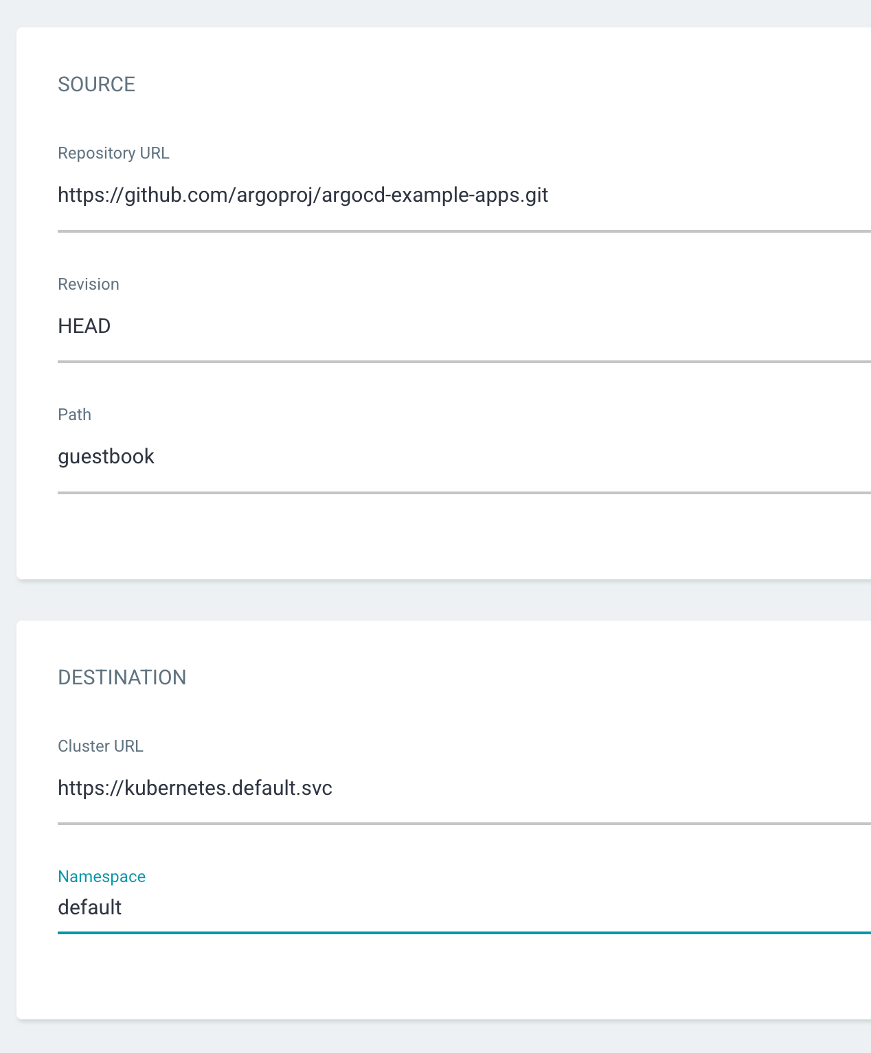 argocd app create guestbook --repo https://github.com/argoproj/argocd-example-apps.git --path guestbook --dest-server https://kubernetes.default.svc --dest-namespace default