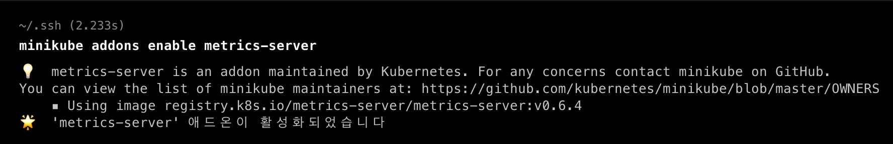 만약 minikube를 사용중이라면 addon을 enable로 설정하면 쉽게 실행시킬 수 있다.