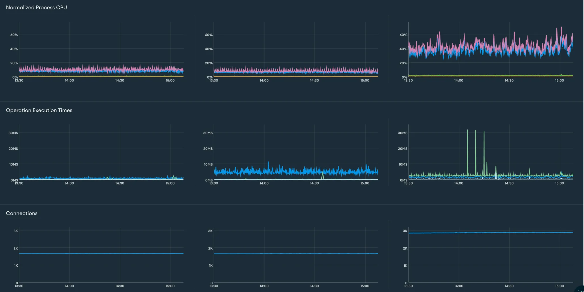 - CPU 사용률, 쿼리 수행 소요 시간, 커넥션 개수 측면에서 진폭이 줄어들었습니다.