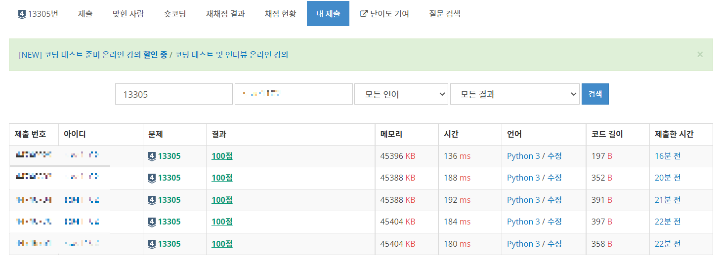 간단한 문제였는데 왜 구현하는 데에 멈춤이 있었을까... 요즘 너무 문제를 안 풀어서 그런지 구현능력이 부족하다. 구현 문제를 풀어봐야겠다.
