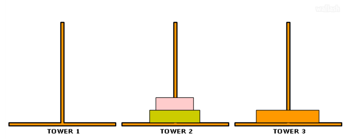 - 나머지 원판들을 세 번째 타워로 옮긴다.