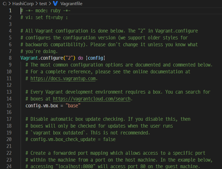 이제 베이그런트가 생성한 Vagrant 파일에서 스크립트를 작성하면 됩니다.