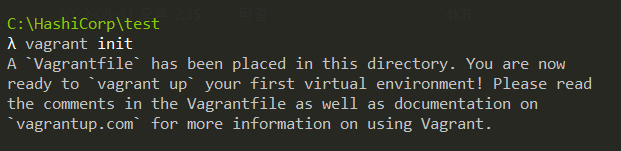 vagrant init으로 프로비저닝에 사용할 기초 파일을 만들어냅니다.