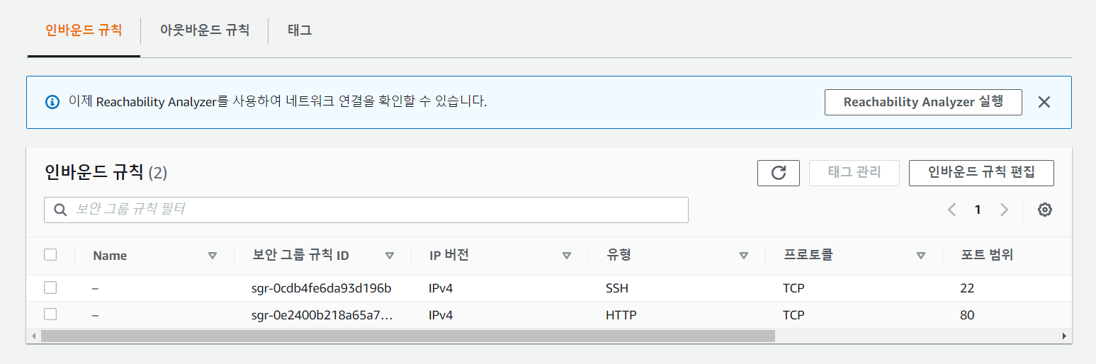 바로 인스턴스의 보안 인바운드 규칙을 추가하지 않았기 때문입니다.