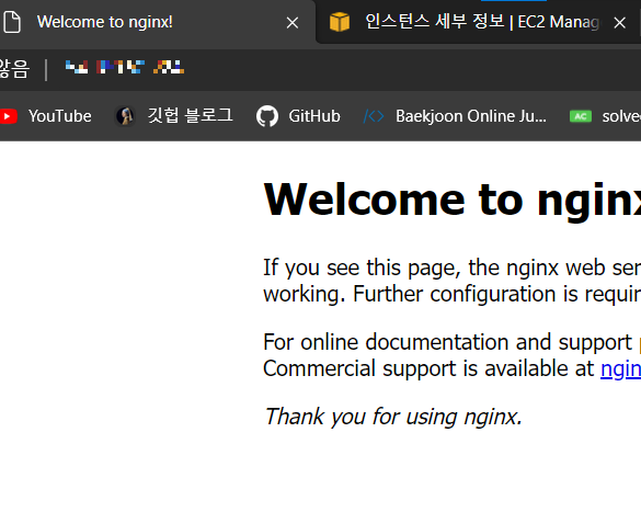 그다음 테스트해보기 위해서 nginx를 설치합니다. 그 후에 바로 AWS 인스턴스의 아이피로 접속하려고 하는데 접속이 바로 가능하지 않을 것입니다. 그래서 AWS EC2의 인스턴스로 들어갑니다.