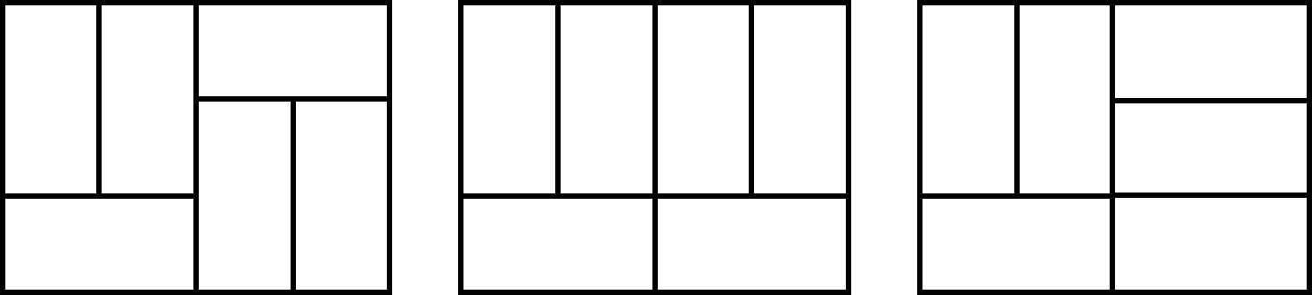 그 다음 3X3 의 타일 배치를 구하려고 했는데, 절대로 배치를 할 수가 없었다. 직관적으로 생각해보면, 3X3은 9개의 타일이 필요한데, 2X1 타일을 아무리 배치한들 8이라는 짝수로 채워지기 때문에 남은 타일 1개를 절대 충족 시킬 수 없기 때문이다.