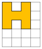 4. 네 번째 스티커는 스티커를 시계방향으로 0, 90, 180도 회전 시킨 모양에 대해 온전히 붙일 수 있는 공간이 없다. 그러나 시계 방향으로 270도 회전한 후에는 공간이 1개 생긴다. 스티커를 붙인 후 노트북의 모양은 아래와 같다. 최종적으로 노트북의 18칸이 스티커로 채워졌다.