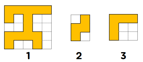 반면 아래는 올바르지 않은 모눈종이의 예시이다. 첫 번째는 윗쪽에 불필요한 행이 있고, 두 번째는 왼쪽에 불필요한 열이 있다. 그리고 세 번째는 스티커의 각 칸이 상하좌우로 모두 연결되어 있지 않다.