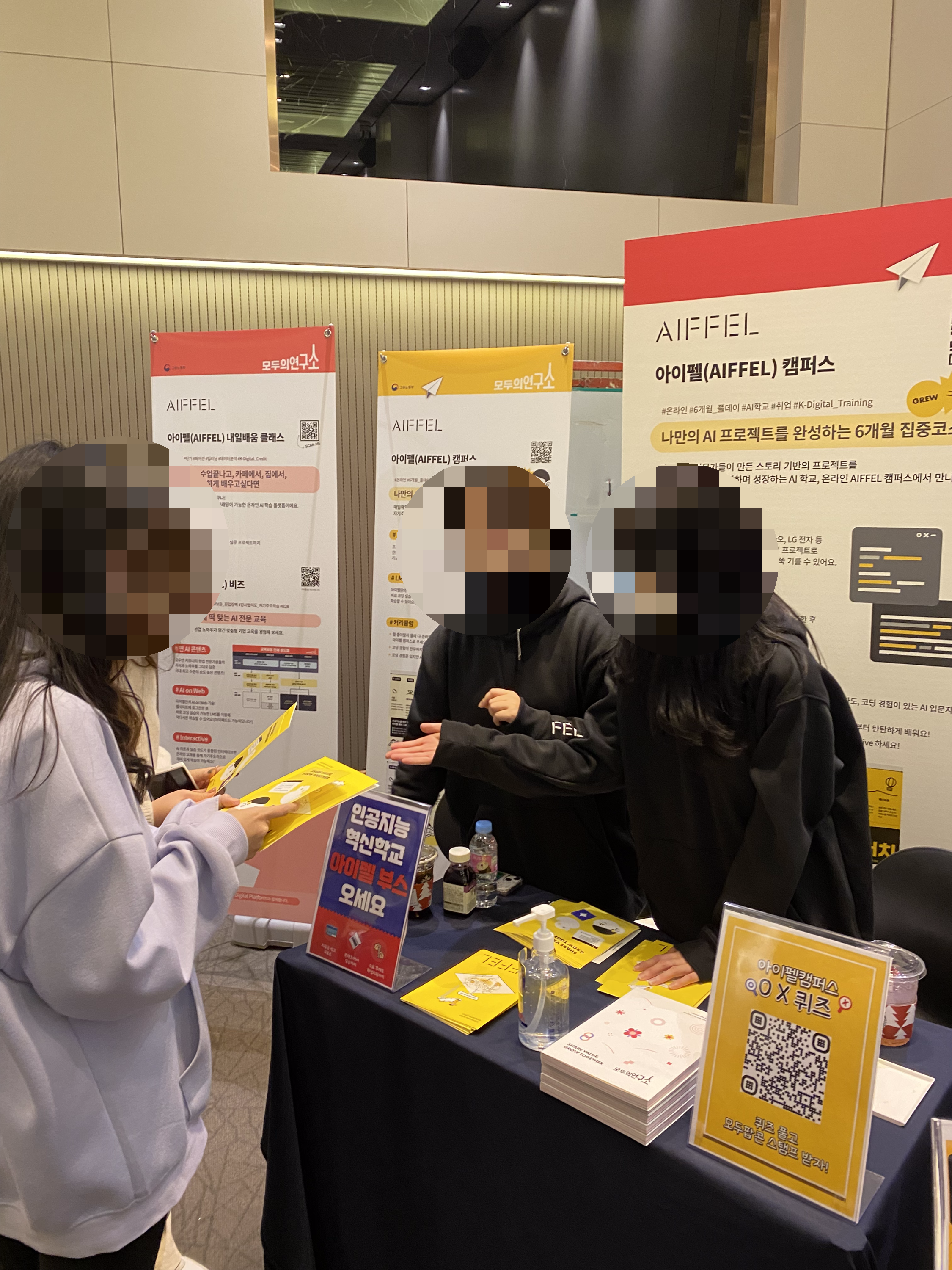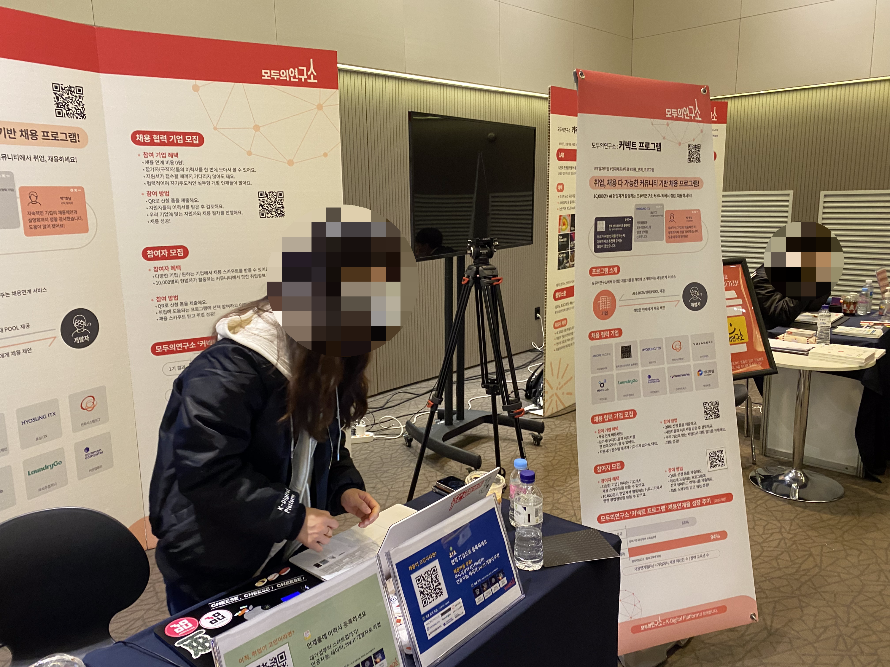 그리고, 메인 홀에서 다양한 부스를 볼 수 있었습니다. 모두의연구소의 아이펠, 풀잎스쿨, 커넥트 프로그램이 먼저 눈에 들어왔으며, 보이저엑스와 Vessel AI 등 각종 부스가 즐비해있어 모두 방문하면서 어떠한 서비스를 사용하면 좋을지 파악할 수 있었습니다.