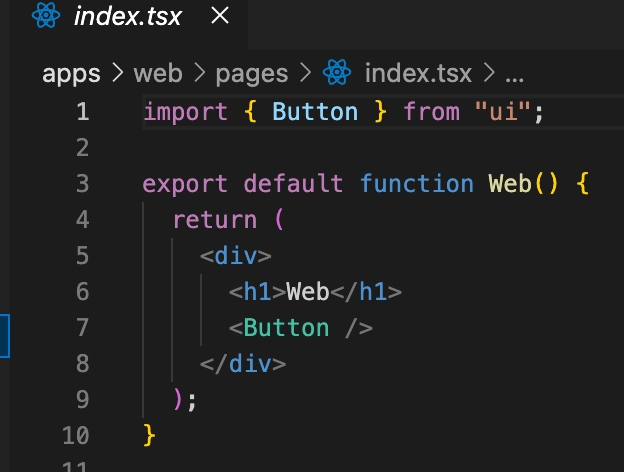여기서 변경하는 모든 코드들은 web과 docs 등 다른 작업 공간에 모두 공유된다.