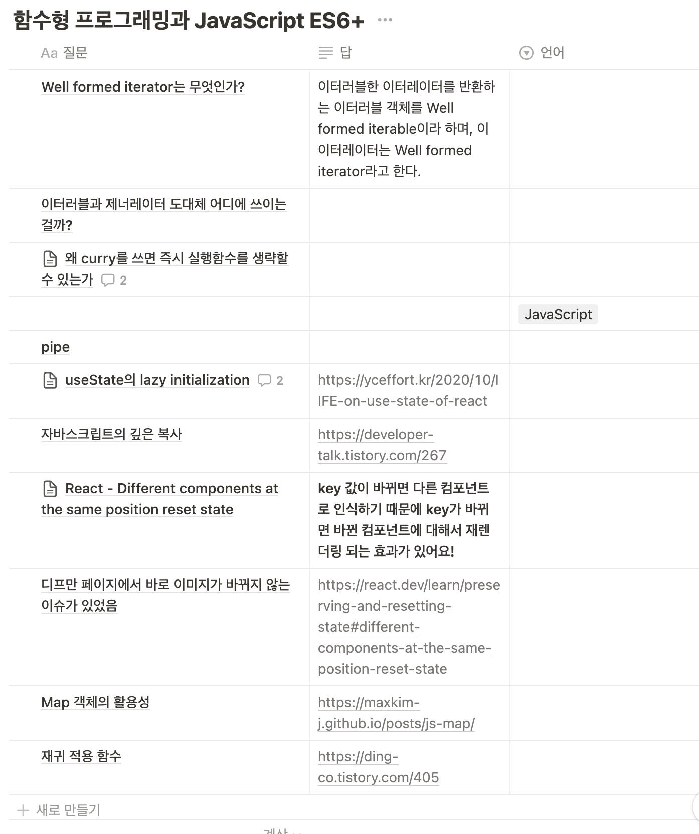 그리고 궁금한 점들을 노션 데이터베이스에 기록하면서 다같이 성장하고자 했다. 딩코님께서 활발하게 공유해주셔서 너무 감사했다.
