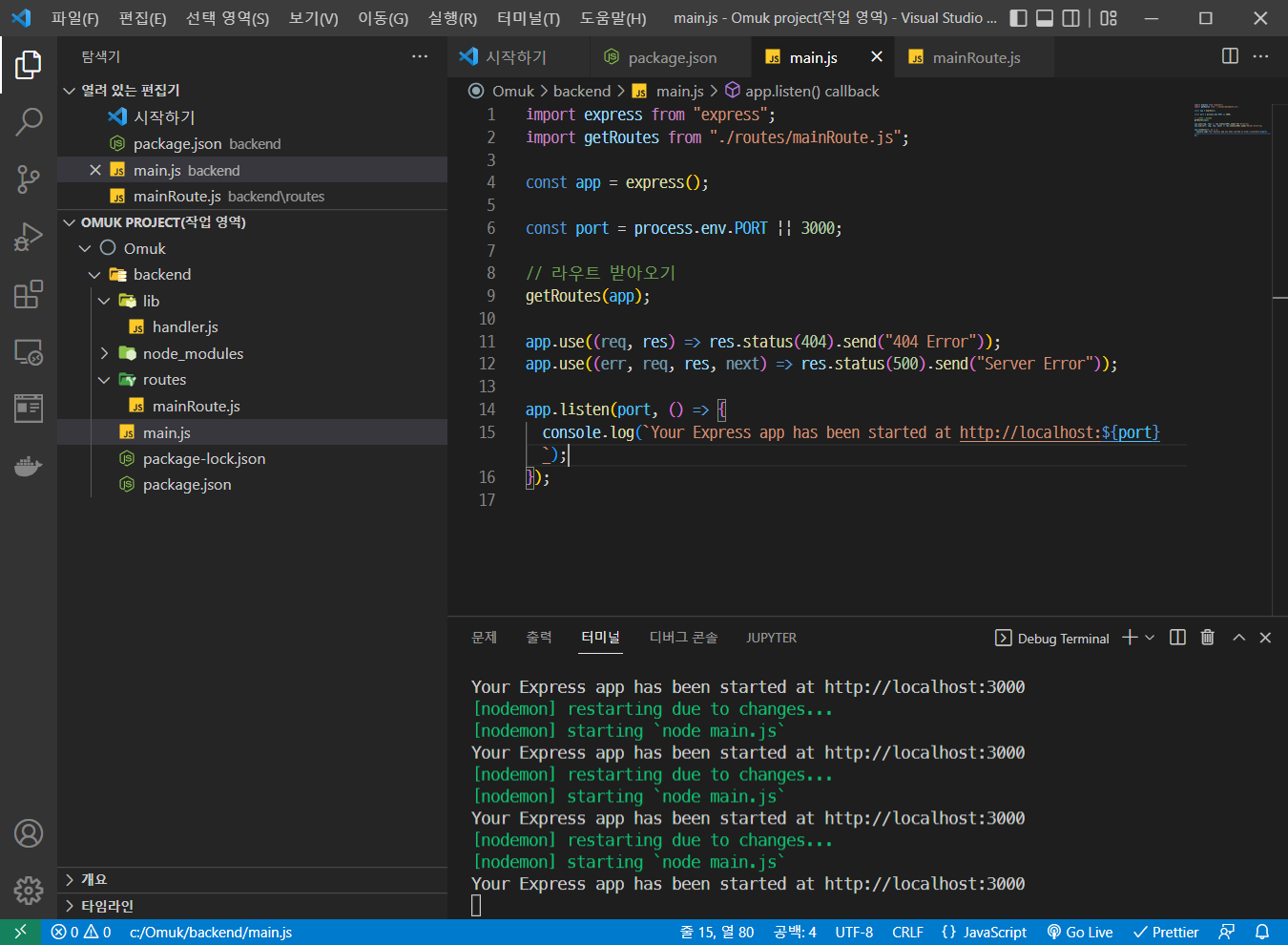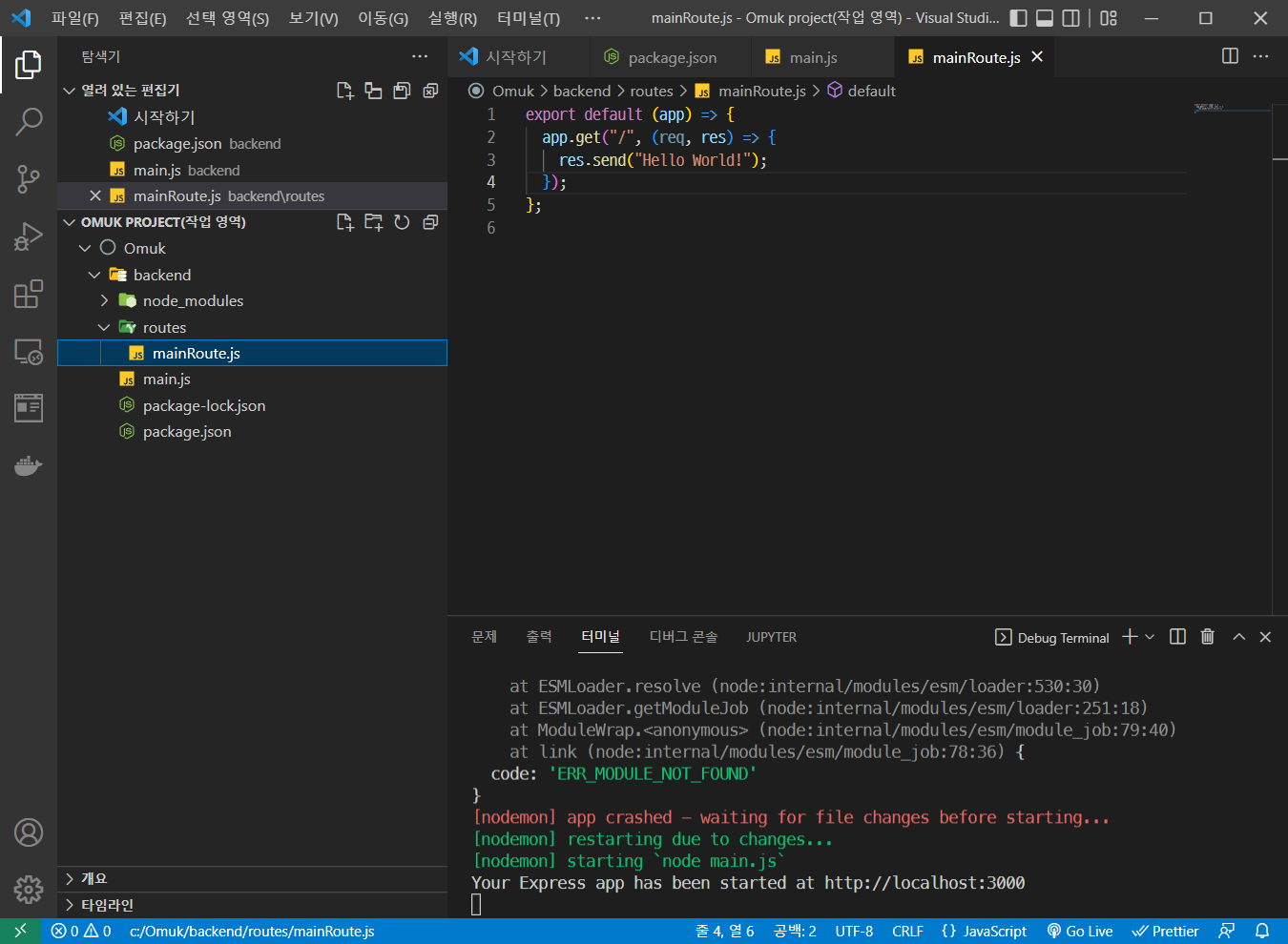 [Toy Project - Omuk] 2. 라우트 설정 및 라이브러리 설치