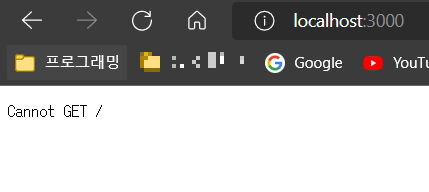 이전 게시물에서 Cannot GET / 이라고 응답을 받은 것도 같은 이유이다. 메인 라우트에 접속하였는데, 브라우저의 요청에 서버가 답하지 않았기 때문이다.