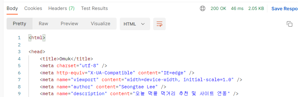 그렇게 하여 아래처럼 응답이 오면 성공입니다.