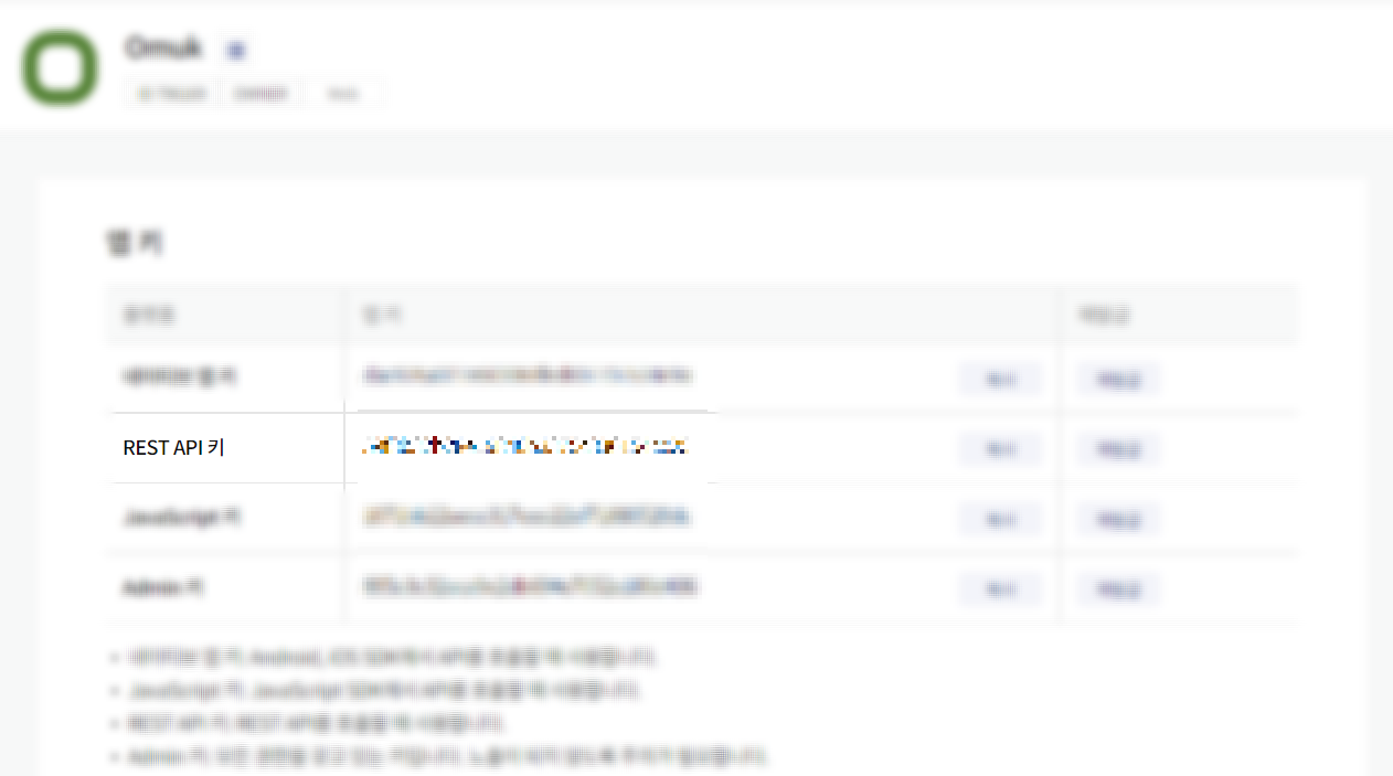 이제 앱키를 클릭하여 REST API 키를 복사합니다.
