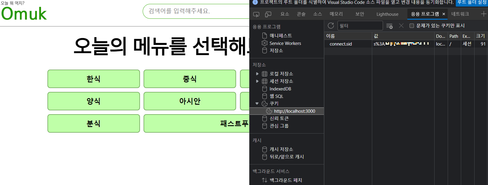 이처럼 정상적으로 로그인 되어 세션 쿠키를 받았습니다. 이제 HTML과 CSS 만 어느 정도 다듬고 새로 가게 데이터 모델을 정의해볼 예정입니다.
