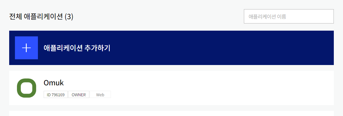 그 이후 애플리케이션 추가하기를 클릭합니다. 저는 미리 만들어뒀습니다.