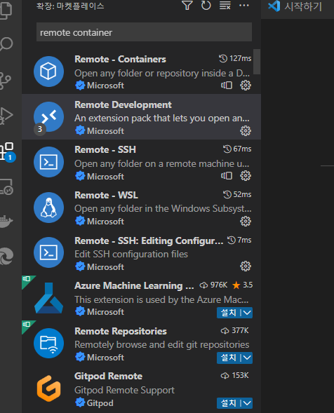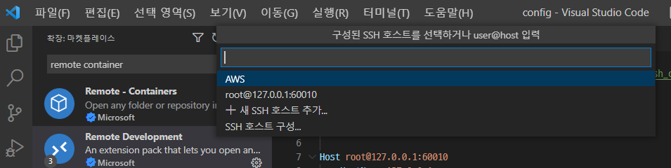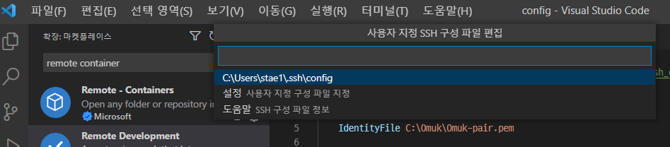 확장 프로그램에서 Remote - SSH와 Remote Development를 설치했습니다.