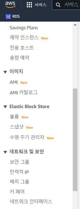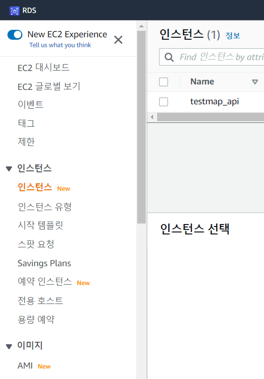 그다음 좌측 네비게이션에서 인스턴스를 클릭합니다.