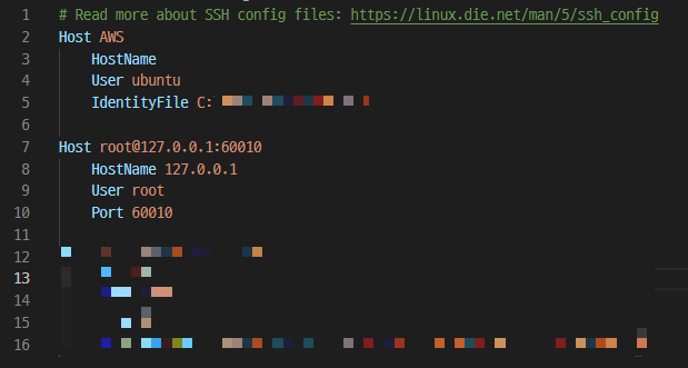 이 인스턴스는 Ubuntu OS 이미지를 사용하므로 ubuntu를 적어줍니다. 그 이후 Identity File에는 키 페어 파일의 경로를 입력해줍니다.