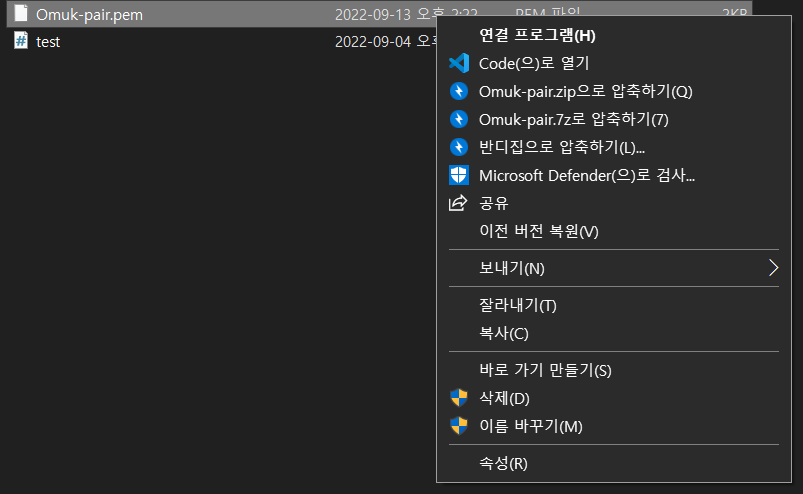 .pem 파일이 있는 디렉토리를 열어줍니다.